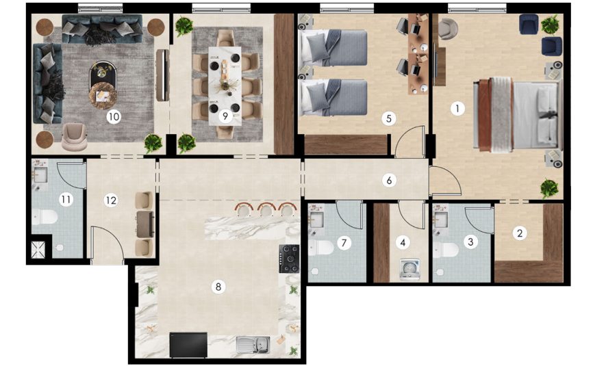 تصاميم داخلية بتشطيبات عصرية تجمع بين الأناقة والجودة، لتمنح الوحدات مظهرًا راقيًا وراحة تدوم.