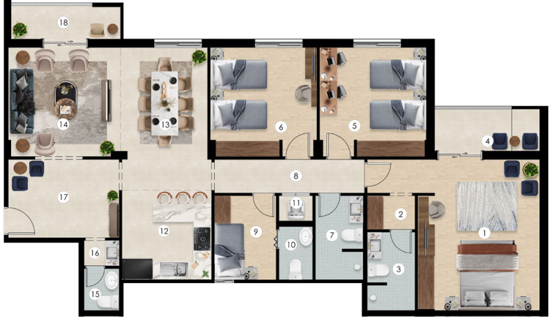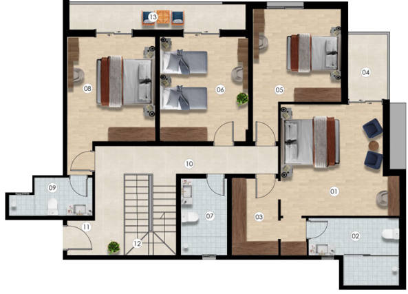 حيث تتداخل المساحات الخضراء والمسطحات المفتوحة مع المرافق المتنوعة، مكونة مجتمع سكني متكامل . يضم المشروع عدة عمائر سكنية بتصاميم حديثة تلبي تطلعات الأسر في مكة المكرمة، وتتنوع بين شقق بغرفتين، ثلاًث غرف، أربع غرف، ودوبلكسات فاخرة