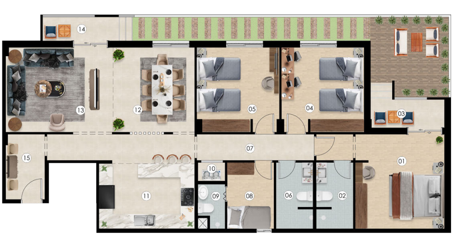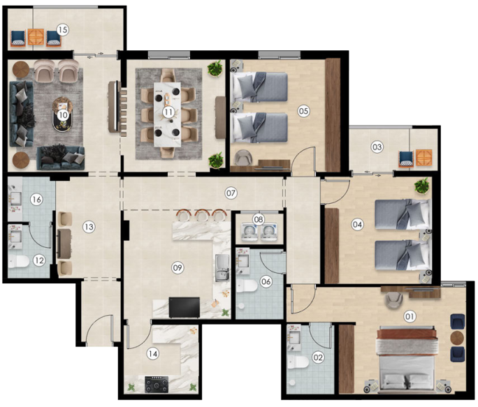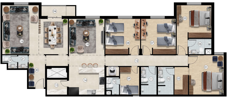 توفر جميع الخدمات الأساسية والترفيهية داخل المشروع، مثل الحدائق، المواقف، والمناطق الترفيهية، لتلبية احتياجات السكان اليومية بسهولة